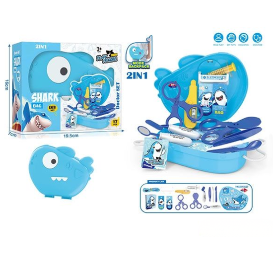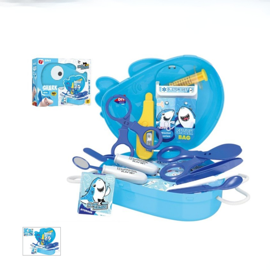 Este entretenido Set de Doctor 2 en 1 Tiburón incluye una maleta y un bolso con diseño temático que encantará a los niños. En su interior encontrarás todos los accesorios médicos necesarios para jugar a ser doctor, guardar todo con orden y llevar la diversión a todas partes. Su diseño 2 en 1 permite usarlo como maletín o bolso de transporte, ideal para juegos de rol, estimular la imaginación y aprender jugando.